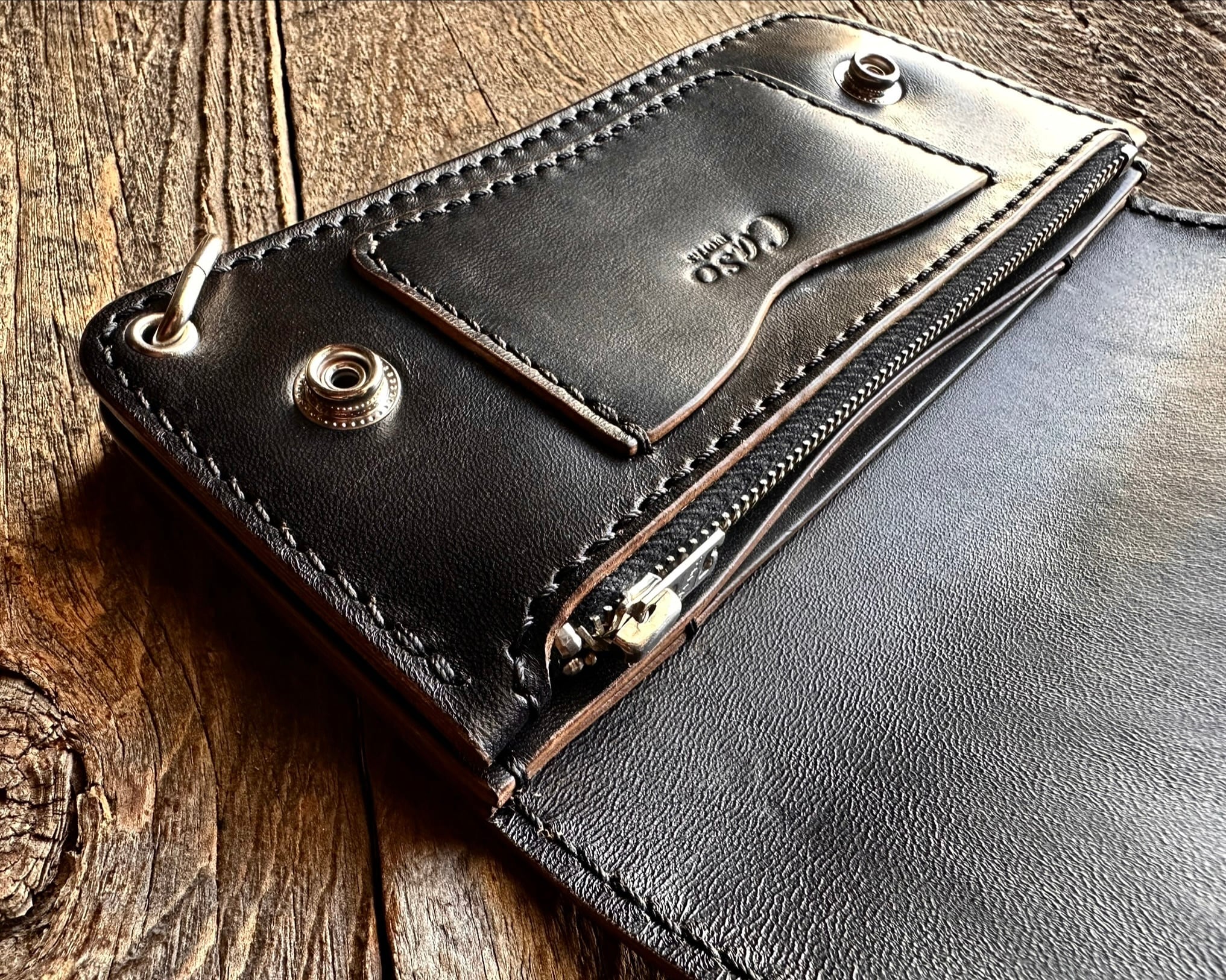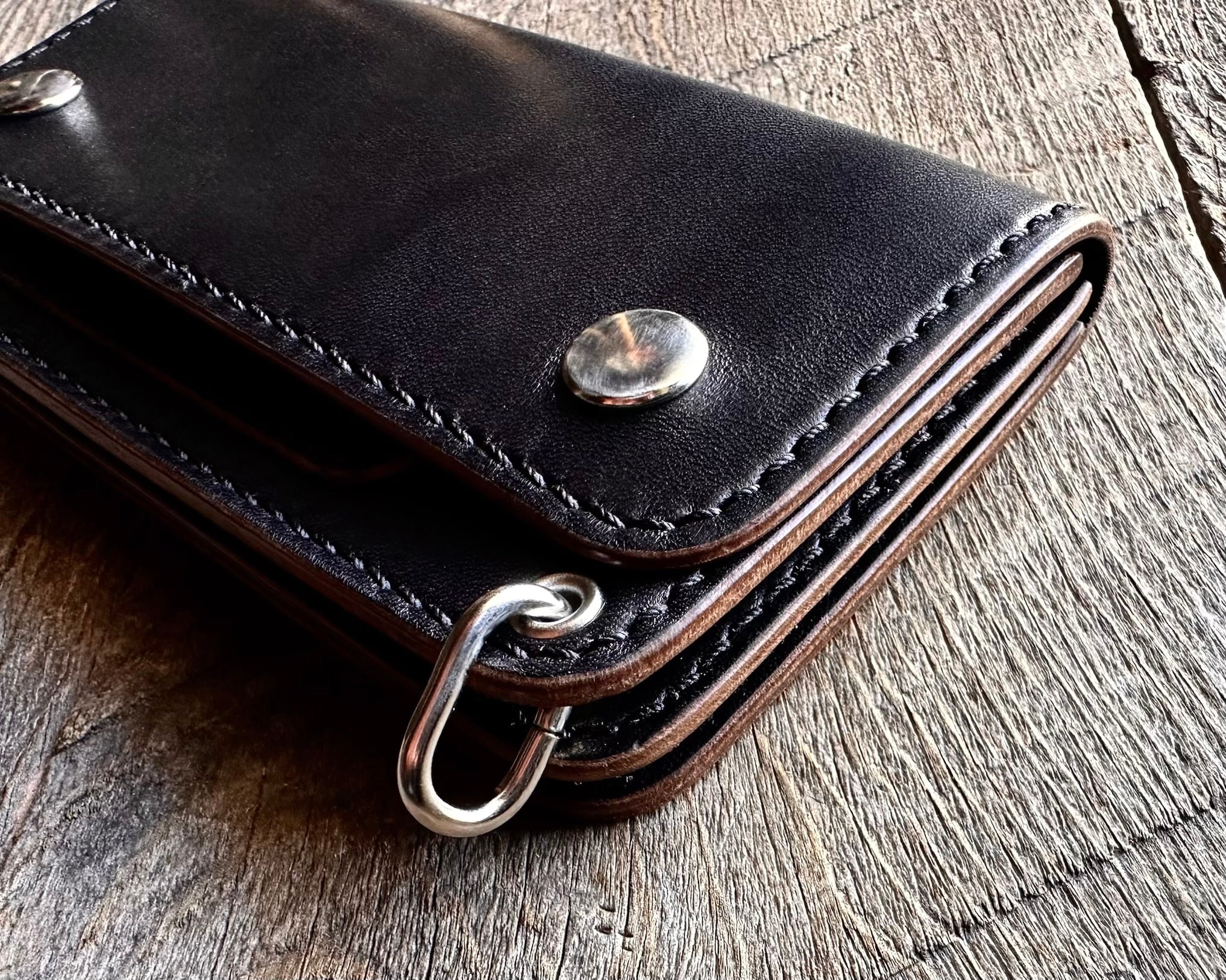 オールハンドメイド総手縫いで仕上げたロングトラッカーウォレットです。