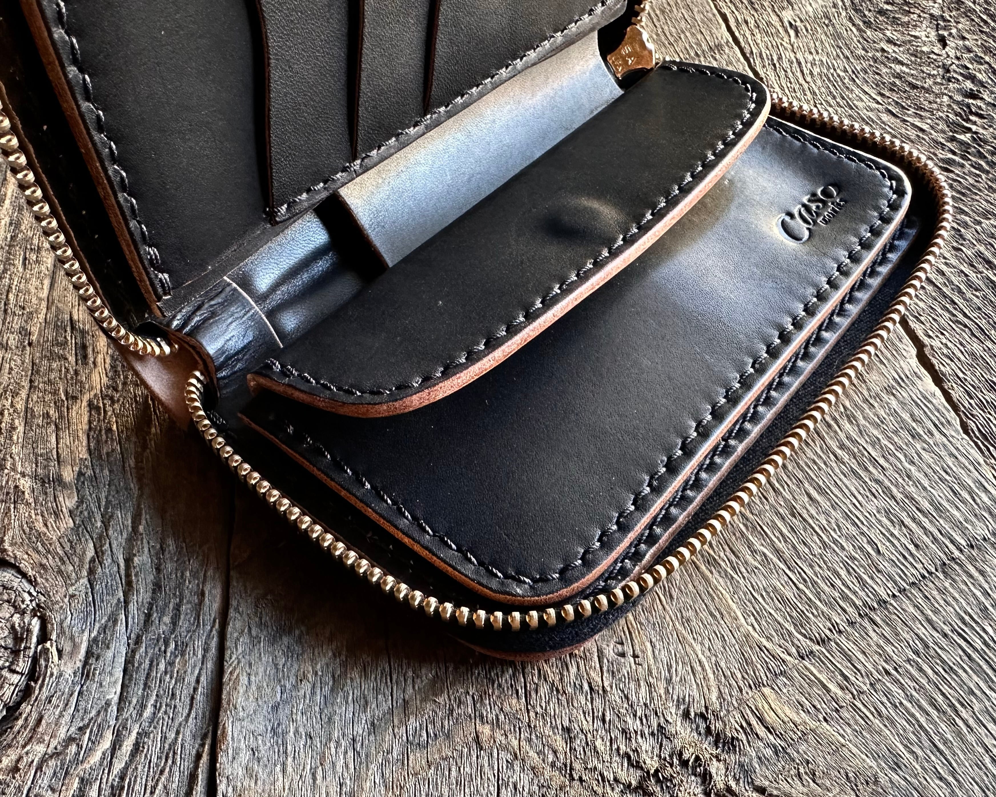 オールハンドメイド総手縫いで仕上げたラウンドジップミドルウォレットウォレットです。