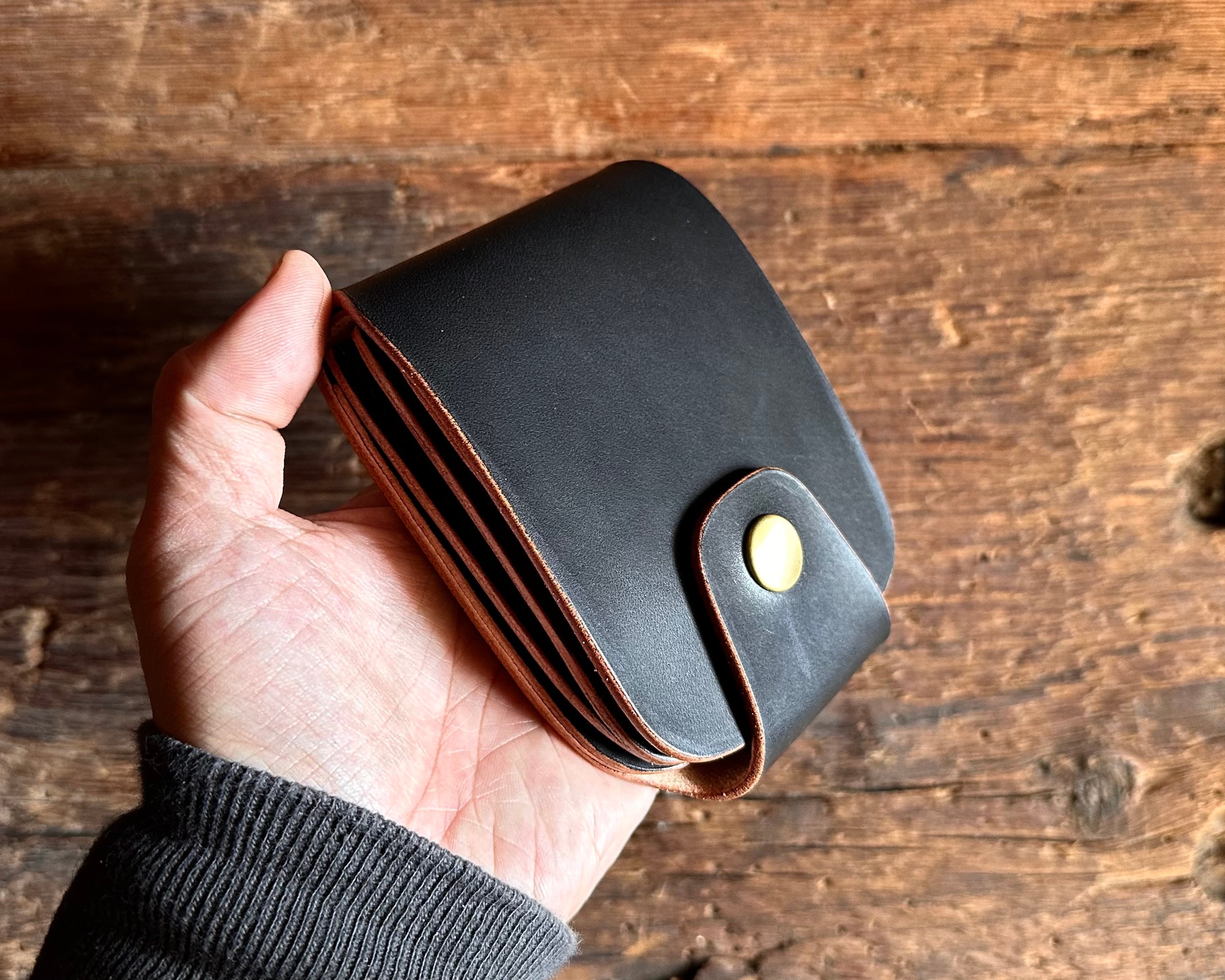 オールハンドメイド総手縫いで仕上げたショートウォレットです。